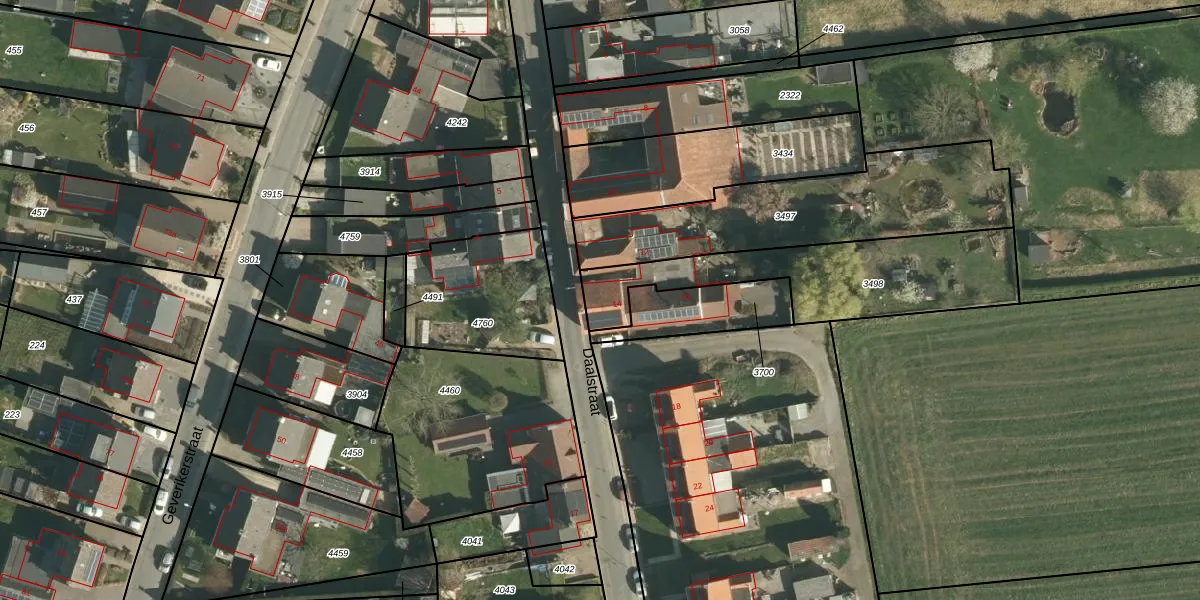 Gebruik de zoekbalk of klik op een perceel voor informatie over de adressen binnen dit perceel.