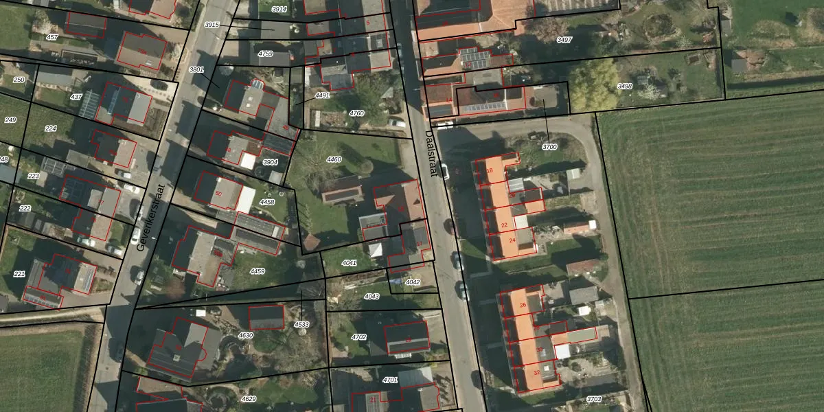Daalstraat 15 is gelegen op kadastraal perceel BEE02F4460. Deze kadastrale aanduiding is uniek en wordt gebruikt door het Kadaster om eigendomsrechten en andere zakelijke rechten vast te leggen. Het perceel maakt onderdeel uit van de kadastrale gemeente Beek.