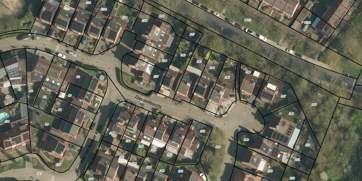 Dassenburcht 16 is gelegen op kadastraal perceel BEE02K143. Deze kadastrale aanduiding is uniek en wordt gebruikt door het Kadaster om eigendomsrechten en andere zakelijke rechten vast te leggen. Het perceel maakt onderdeel uit van de kadastrale gemeente Beek.