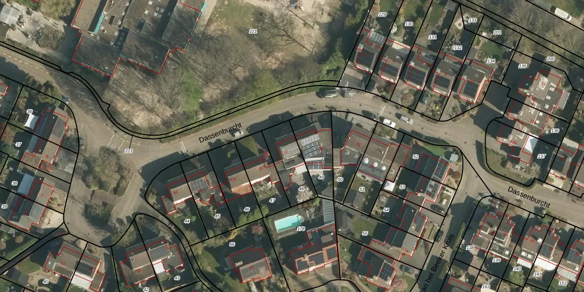 Gebruik de zoekbalk of klik op een perceel voor informatie over de adressen binnen dit perceel.
