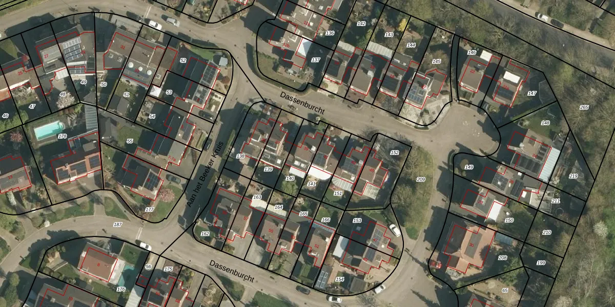 Dassenburcht 39 is gelegen op kadastraal perceel BEE02K140. Deze kadastrale aanduiding is uniek en wordt gebruikt door het Kadaster om eigendomsrechten en andere zakelijke rechten vast te leggen. Het perceel maakt onderdeel uit van de kadastrale gemeente Beek.