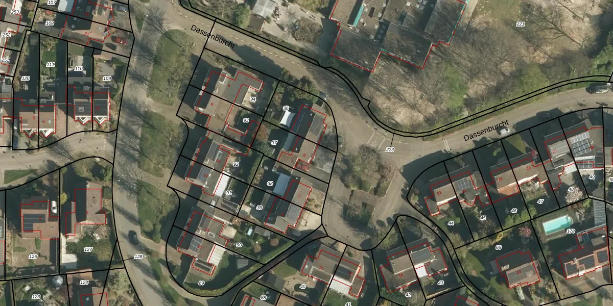 Dassenburcht 5 is gelegen op kadastraal perceel BEE02K37. Deze kadastrale aanduiding is uniek en wordt gebruikt door het Kadaster om eigendomsrechten en andere zakelijke rechten vast te leggen. Het perceel maakt onderdeel uit van de kadastrale gemeente Beek.