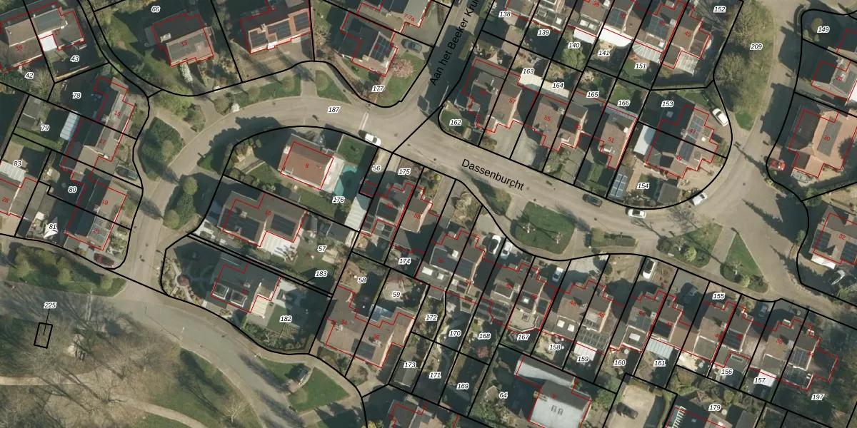 Dassenburcht 58 is gelegen op kadastraal perceel BEE02K174. Deze kadastrale aanduiding is uniek en wordt gebruikt door het Kadaster om eigendomsrechten en andere zakelijke rechten vast te leggen. Het perceel maakt onderdeel uit van de kadastrale gemeente Beek.
