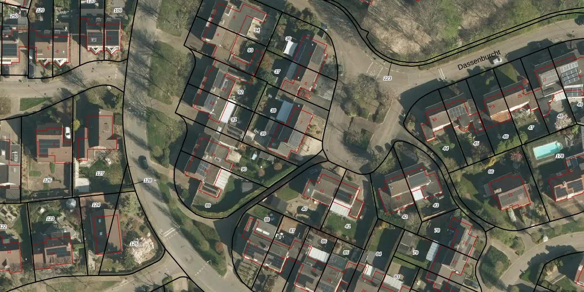 Dassenburcht 9 is gelegen op kadastraal perceel BEE02K39. Deze kadastrale aanduiding is uniek en wordt gebruikt door het Kadaster om eigendomsrechten en andere zakelijke rechten vast te leggen. Het perceel maakt onderdeel uit van de kadastrale gemeente Beek.