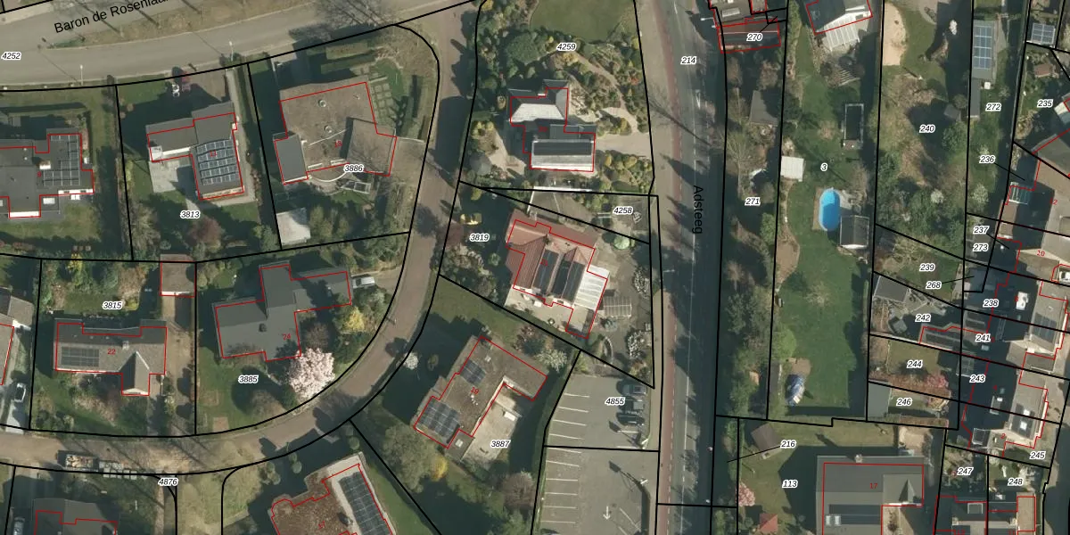 Het adres ligt op het perceel BEE02-F-3819, dat zich in de kadastrale gemeente Beek bevindt. Het perceel is kleiner dan gemiddeld in Beek. Het perceel is 915 m² groot, terwijl het gemiddelde ligt op 2289,47 m². Het kleinste perceel in de kadastrale gemeente is 0 m² groot. De grootste perceeloppervlakte is 82,9 ha. Er zijn geen andere adressen aanwezig op het perceel. In de Basisregistratie Kadaster (BRK) werden de grenzen van het perceel geregistreerd op 11-09-2009.