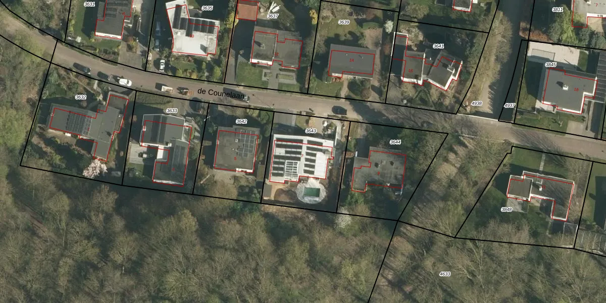 de Counelaan 7 is gelegen op kadastraal perceel BEE02F3643. Deze kadastrale aanduiding is uniek en wordt gebruikt door het Kadaster om eigendomsrechten en andere zakelijke rechten vast te leggen. Het perceel maakt onderdeel uit van de kadastrale gemeente Beek.
