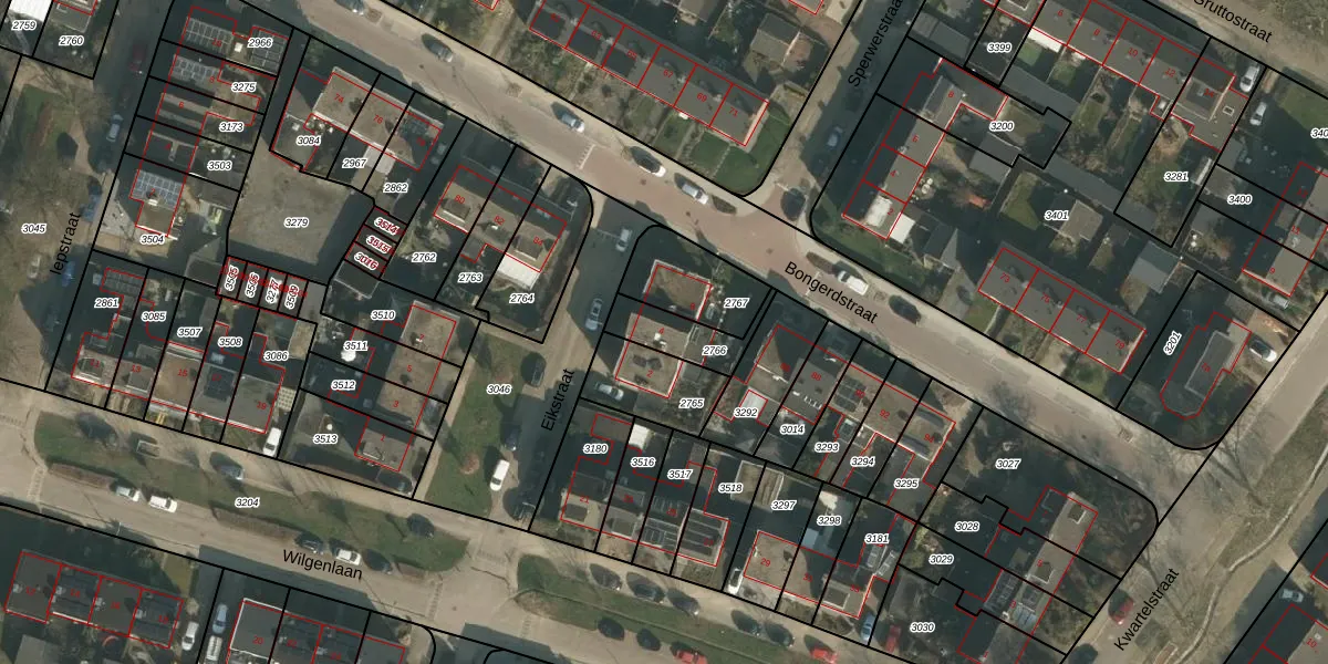 Gebruik de zoekbalk of klik op een perceel voor informatie over de adressen binnen dit perceel.