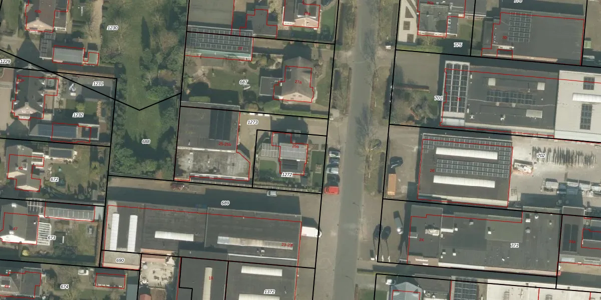 Gebruik de zoekbalk of klik op een perceel voor informatie over de adressen binnen dit perceel.
