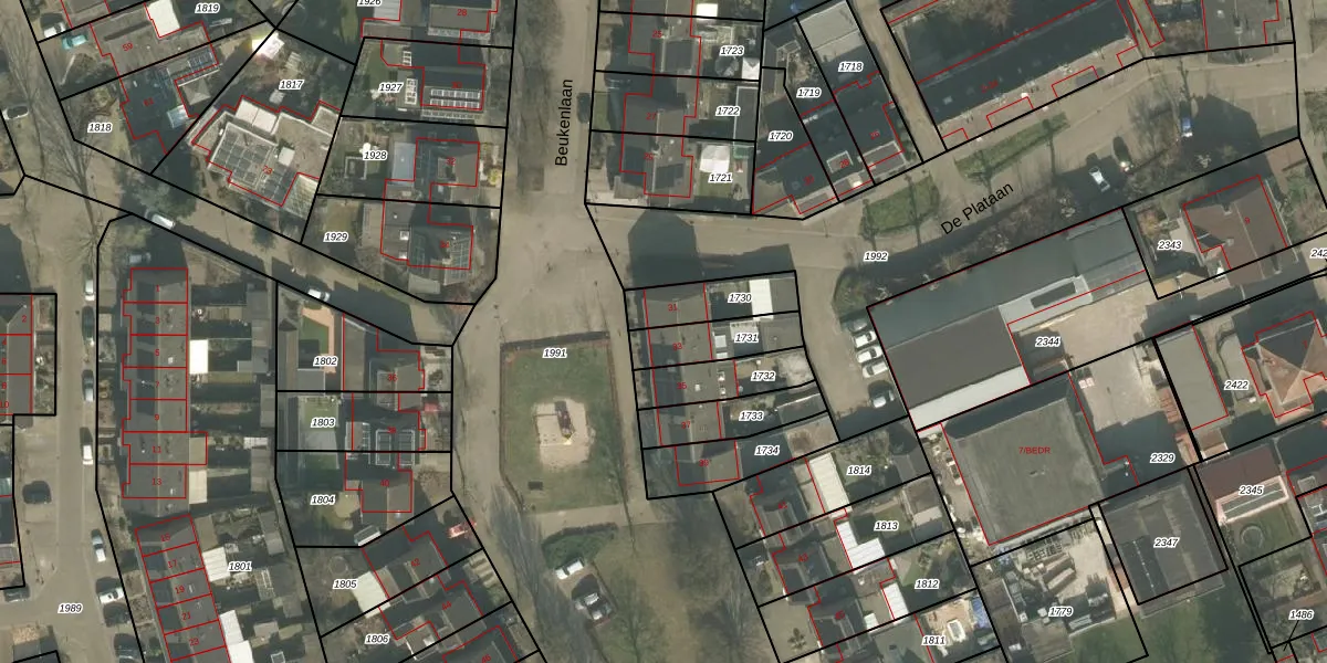Beukenlaan 33 is gelegen op kadastraal perceel BEE01B1731. Deze kadastrale aanduiding is uniek en wordt gebruikt door het Kadaster om eigendomsrechten en andere zakelijke rechten vast te leggen. Het perceel maakt onderdeel uit van de kadastrale gemeente Beek en Donk.