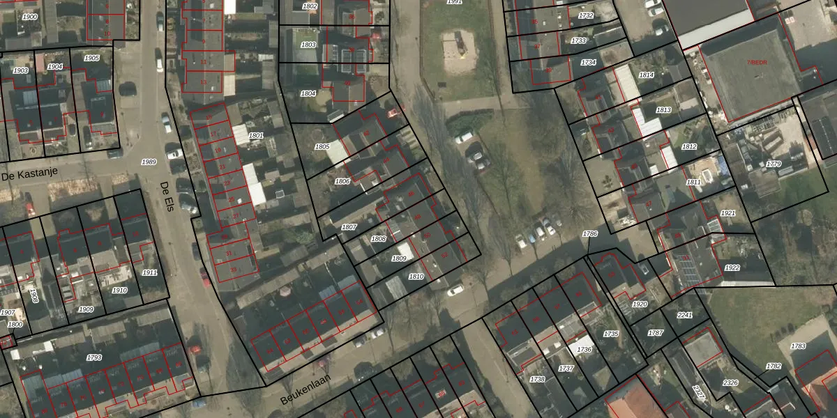 Gebruik de zoekbalk of klik op een perceel voor informatie over de adressen binnen dit perceel.
