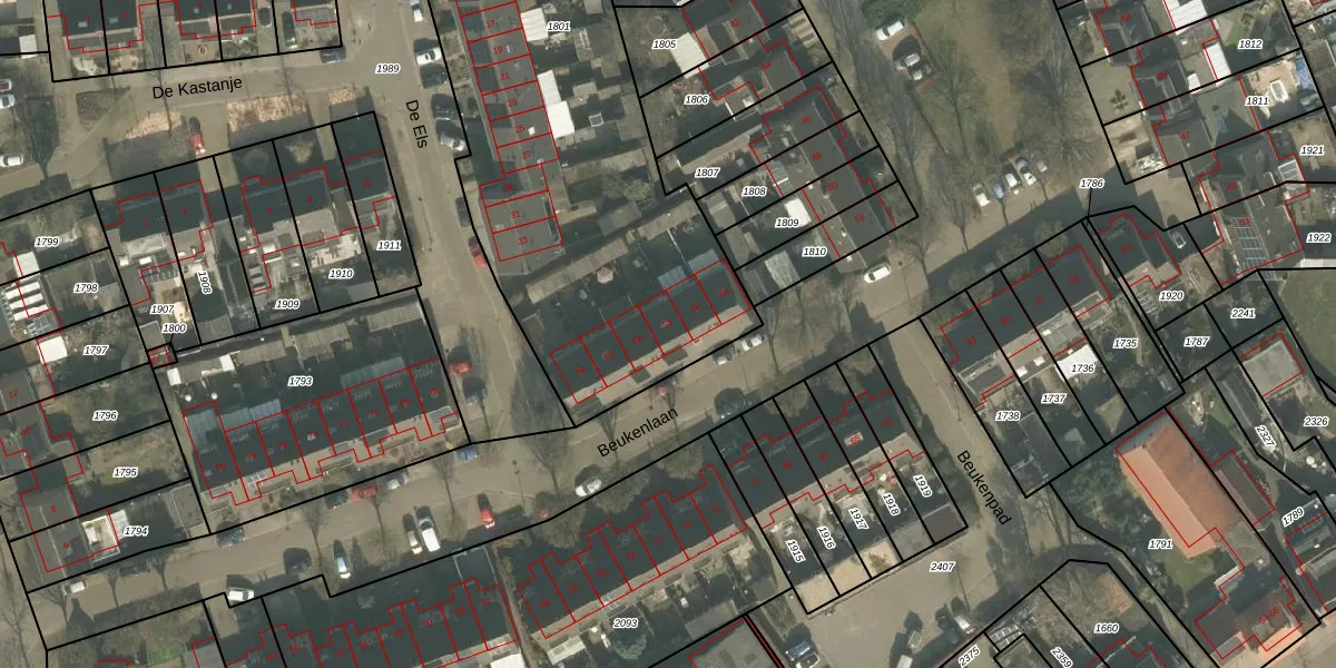 Beukenlaan 58 is gelegen op kadastraal perceel BEE01B1801. Deze kadastrale aanduiding is uniek en wordt gebruikt door het Kadaster om eigendomsrechten en andere zakelijke rechten vast te leggen. Het perceel maakt onderdeel uit van de kadastrale gemeente Beek en Donk.