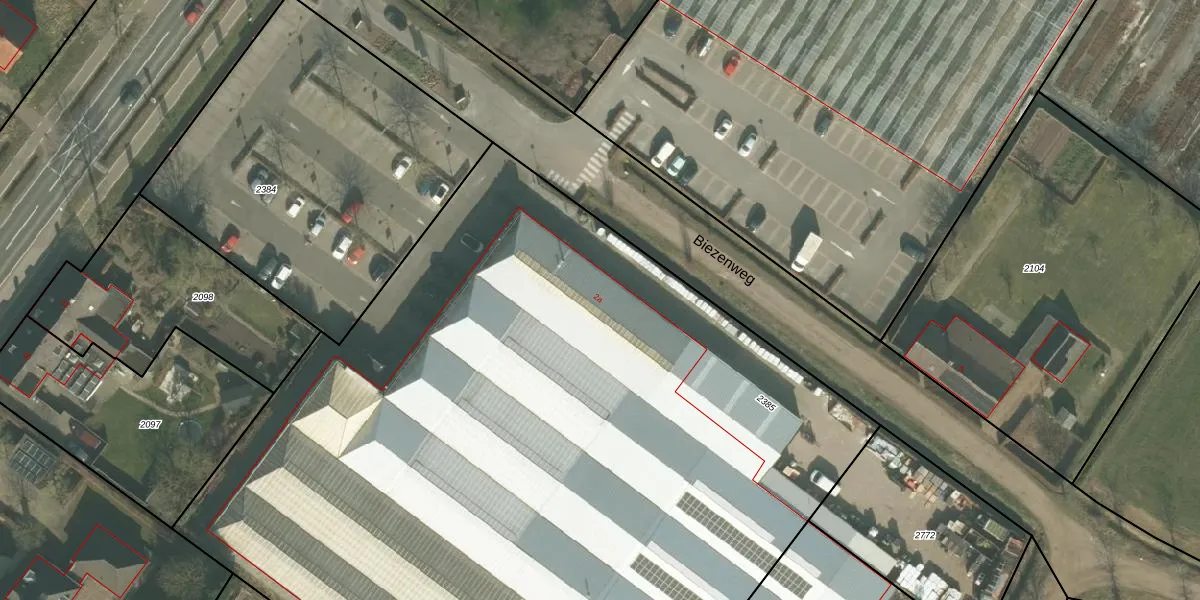 Het perceel waarop Biezenweg 2-a staat heeft een oppervlakte van 6905 m². Dit is een zeer groot perceel. De perceeloppervlakte wordt geregistreerd door het Kadaster. Gedetailleerde informatie over de maten van dit perceel kunt u vinden in het rapport Kadastrale kaart met maatvoering van Biezenweg 2-a.