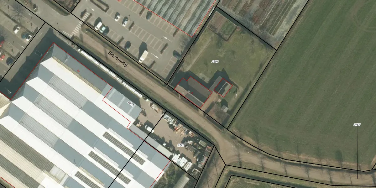Biezenweg 5 is gelegen op kadastraal perceel BEE01F2104. Deze kadastrale aanduiding is uniek en wordt gebruikt door het Kadaster om eigendomsrechten en andere zakelijke rechten vast te leggen. Het perceel maakt onderdeel uit van de kadastrale gemeente Beek en Donk.