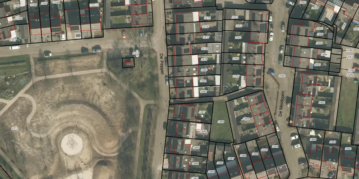 De Peppel 21 is gelegen op kadastraal perceel BEE01B1682. Deze kadastrale aanduiding is uniek en wordt gebruikt door het Kadaster om eigendomsrechten en andere zakelijke rechten vast te leggen. Het perceel maakt onderdeel uit van de kadastrale gemeente Beek en Donk.