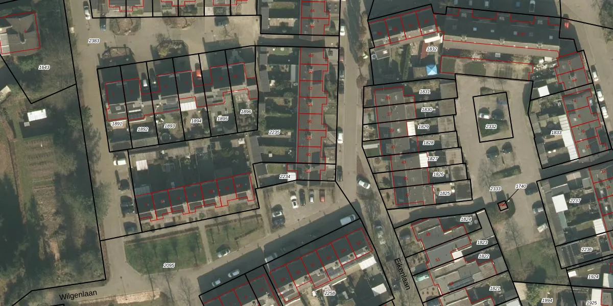 Het perceel waarop Eikenlaan 60 staat heeft een oppervlakte van 2069 m². Dit is een zeer groot perceel. De perceeloppervlakte wordt geregistreerd door het Kadaster. Gedetailleerde informatie over de maten van dit perceel kunt u vinden in het rapport Kadastrale kaart met maatvoering van Eikenlaan 60.