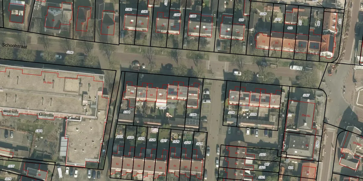 Het perceel waarop Schoolstraat 13 staat heeft een oppervlakte van 827 m². Dit is een groot perceel. De perceeloppervlakte wordt geregistreerd door het Kadaster. Gedetailleerde informatie over de maten van dit perceel kunt u vinden in het rapport Kadastrale kaart met maatvoering van Schoolstraat 13.
