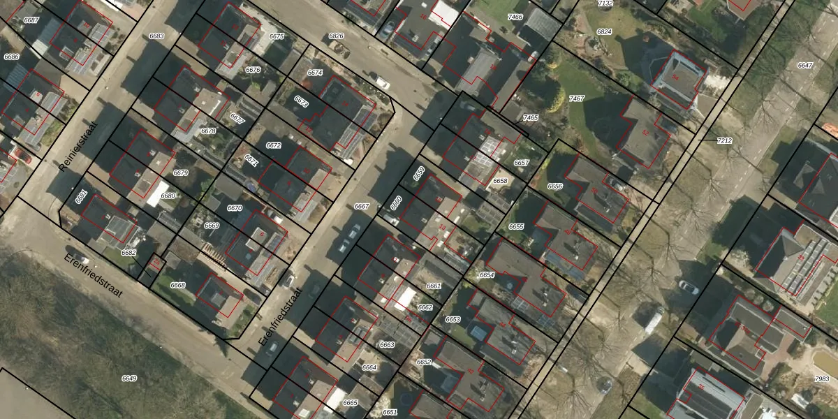 Erenfriedstraat 13 is gelegen op kadastraal perceel BEE02B6660. Deze kadastrale aanduiding is uniek en wordt gebruikt door het Kadaster om eigendomsrechten en andere zakelijke rechten vast te leggen. Het perceel maakt onderdeel uit van de kadastrale gemeente Beek.
