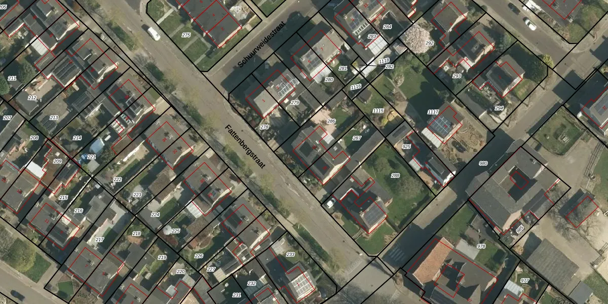 Het perceel waarop Fattenbergstraat 41 staat heeft een oppervlakte van 348 m². Dit is een groot perceel. De perceeloppervlakte wordt geregistreerd door het Kadaster. Gedetailleerde informatie over de maten van dit perceel kunt u vinden in het rapport Kadastrale kaart met maatvoering van Fattenbergstraat 41.