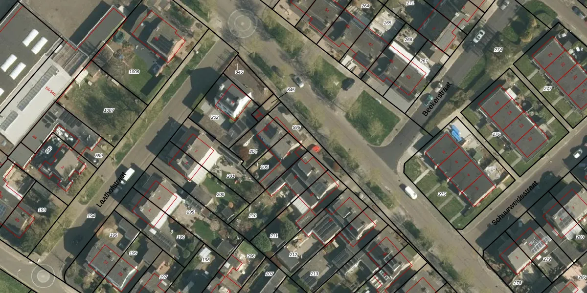 Gebruik de zoekbalk of klik op een perceel voor informatie over de adressen binnen dit perceel.