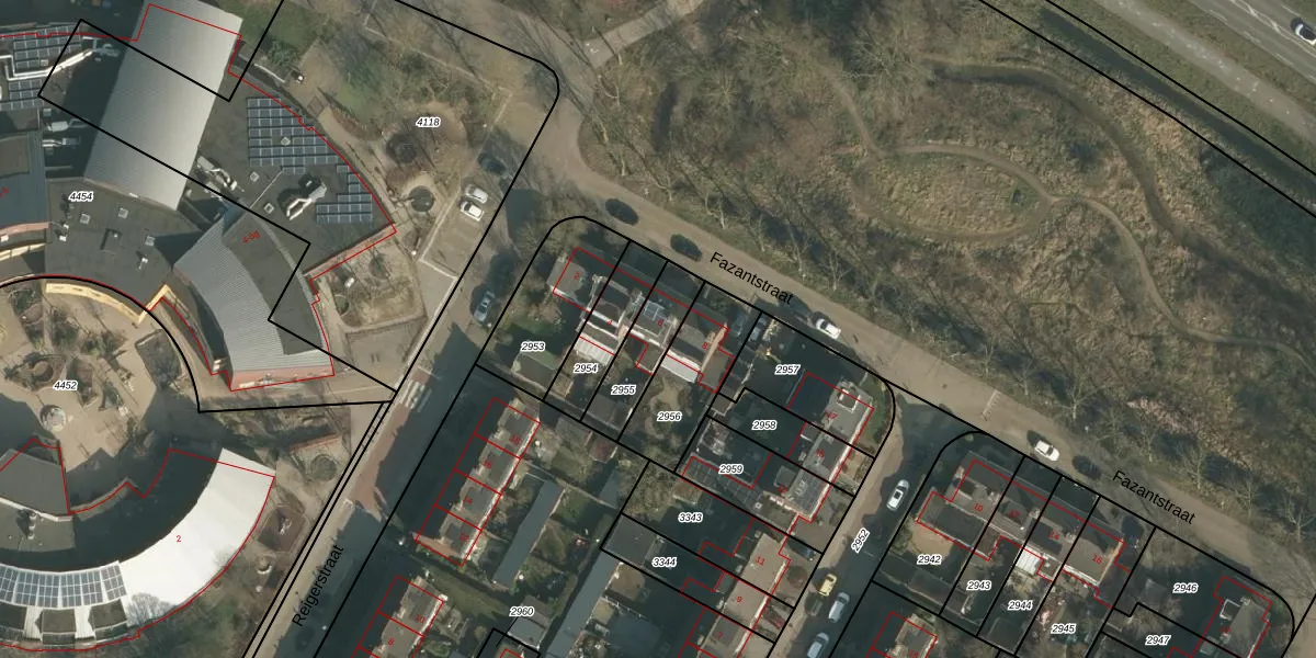 Gebruik de zoekbalk of klik op een perceel voor informatie over de adressen binnen dit perceel.