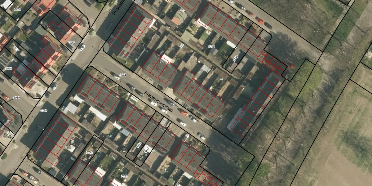 Het perceel waarop Fredericusstraat 10 staat heeft een oppervlakte van 4963 m². Dit is een zeer groot perceel. De perceeloppervlakte wordt geregistreerd door het Kadaster. Gedetailleerde informatie over de maten van dit perceel kunt u vinden in het rapport Kadastrale kaart met maatvoering van Fredericusstraat 10.