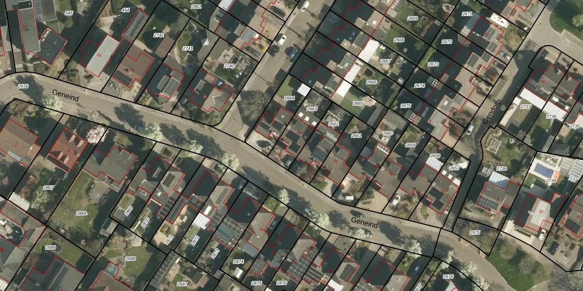 Gebruik de zoekbalk of klik op een perceel voor informatie over de adressen binnen dit perceel.