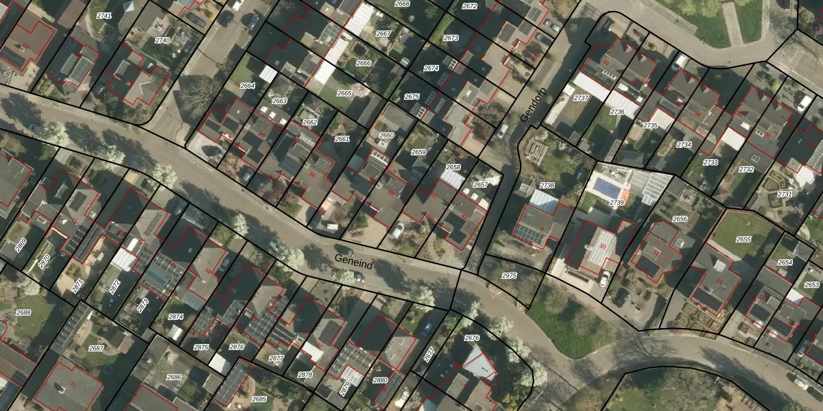 Het perceel waarop Geneind 40 staat heeft een oppervlakte van 265 m². Dit is een middelgroot perceel. De perceeloppervlakte wordt geregistreerd door het Kadaster. Gedetailleerde informatie over de maten van dit perceel kunt u vinden in het rapport Kadastrale kaart met maatvoering van Geneind 40.