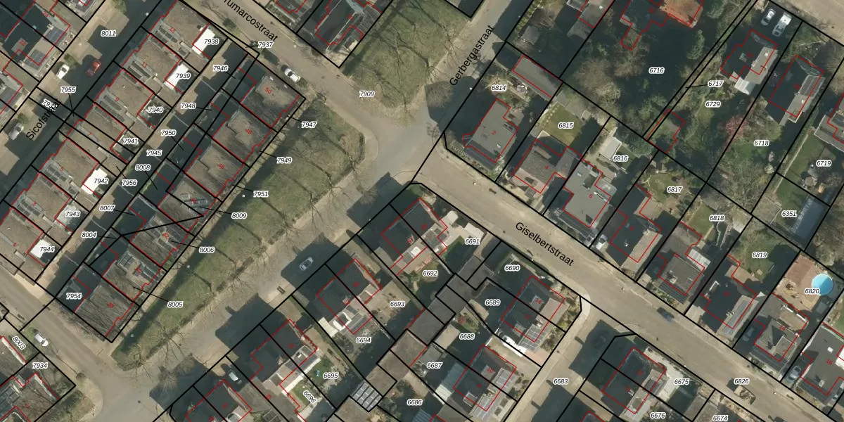 Gebruik de zoekbalk of klik op een perceel voor informatie over de adressen binnen dit perceel.