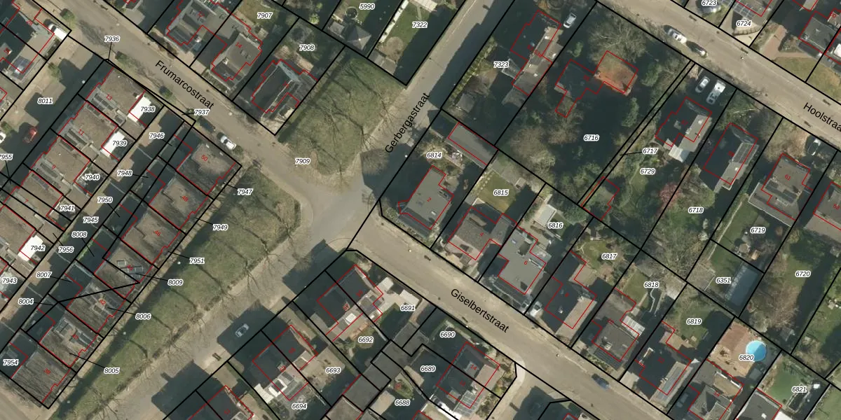 Het perceel waarop Giselbertstraat 2 staat heeft een oppervlakte van 482 m². Dit is een groot perceel. De perceeloppervlakte wordt geregistreerd door het Kadaster. Gedetailleerde informatie over de maten van dit perceel kunt u vinden in het rapport Kadastrale kaart met maatvoering van Giselbertstraat 2.