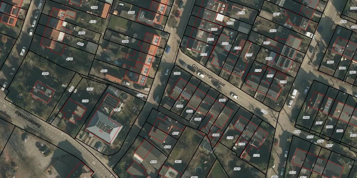Gebruik de zoekbalk of klik op een perceel voor informatie over de adressen binnen dit perceel.