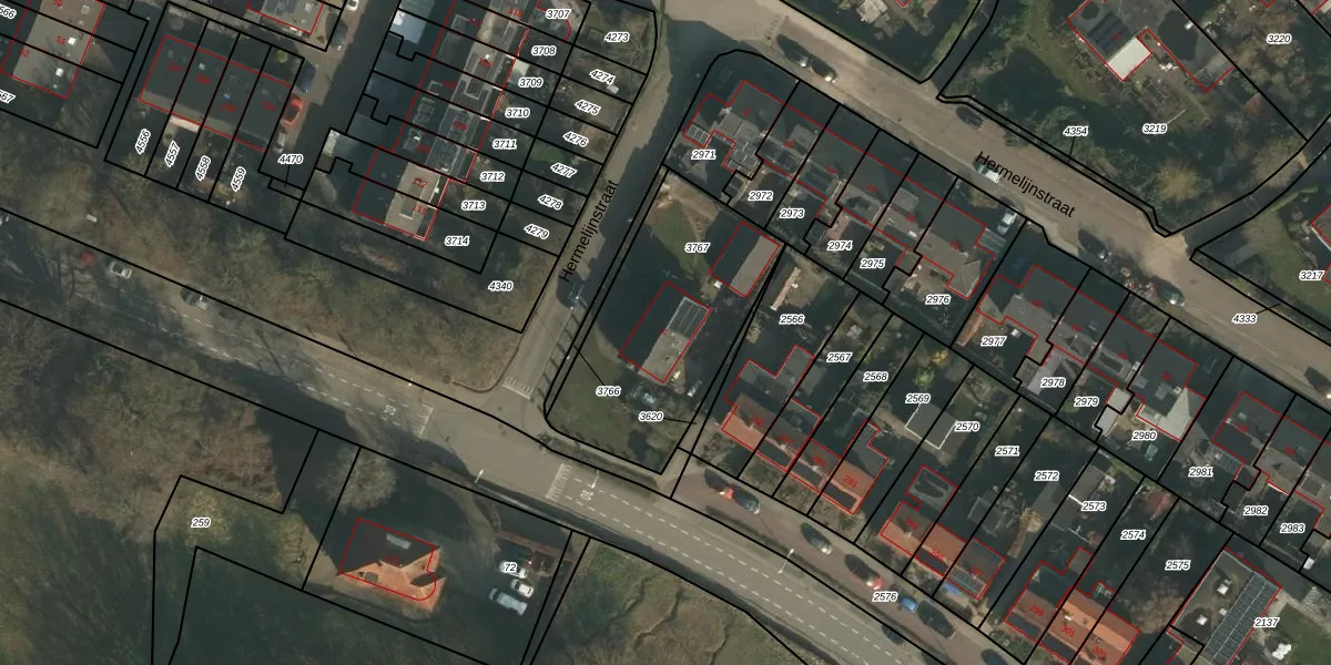 Gebruik de zoekbalk of klik op een perceel voor informatie over de adressen binnen dit perceel.