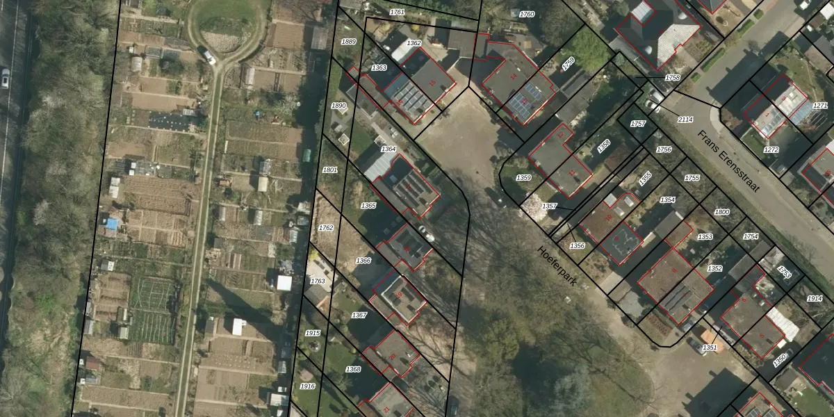 Het perceel waarop Hoeferpark 17 staat heeft een oppervlakte van 566 m². Dit is een groot perceel. De perceeloppervlakte wordt geregistreerd door het Kadaster. Gedetailleerde informatie over de maten van dit perceel kunt u vinden in het rapport Kadastrale kaart met maatvoering van Hoeferpark 17.