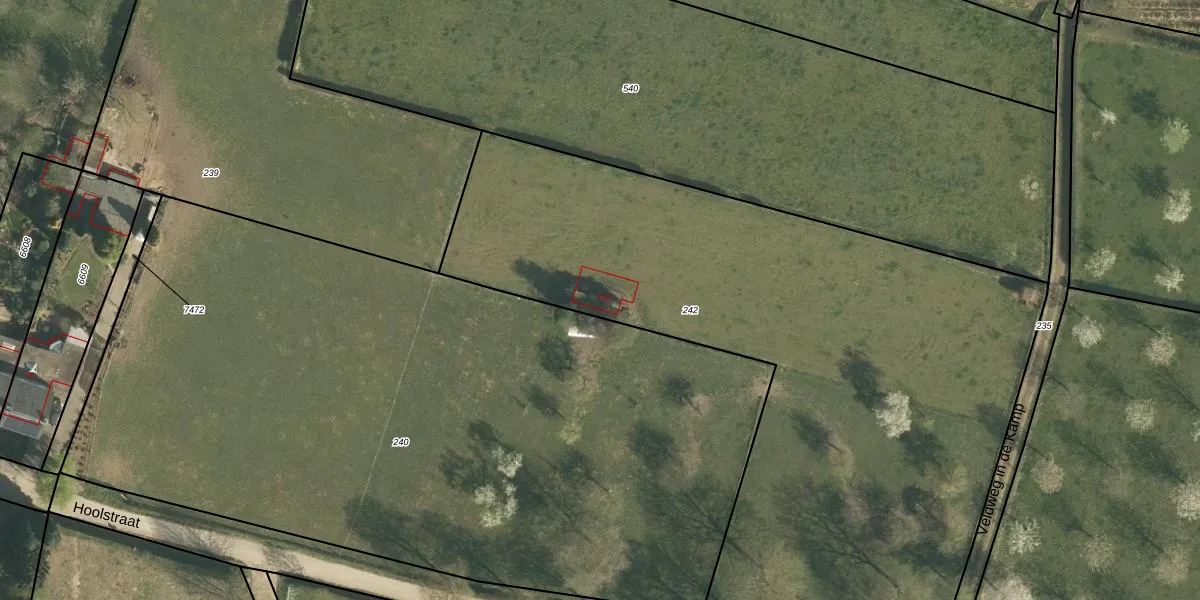 Het perceel waarop Hoolstraat 100 staat heeft een oppervlakte van 4025 m². Dit is een zeer groot perceel. De perceeloppervlakte wordt geregistreerd door het Kadaster. Gedetailleerde informatie over de maten van dit perceel kunt u vinden in het rapport Kadastrale kaart met maatvoering van Hoolstraat 100.