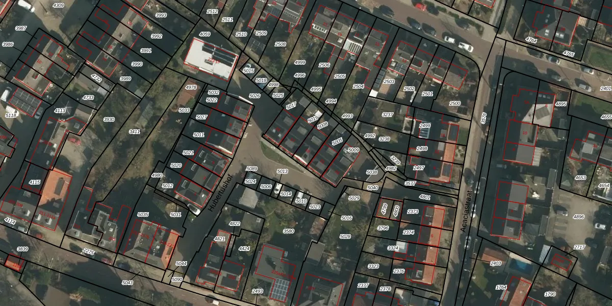 Het perceel waarop Hubertushof 19 staat heeft een oppervlakte van 106 m². Dit is een middelgroot perceel. De perceeloppervlakte wordt geregistreerd door het Kadaster. Gedetailleerde informatie over de maten van dit perceel kunt u vinden in het rapport Kadastrale kaart met maatvoering van Hubertushof 19.