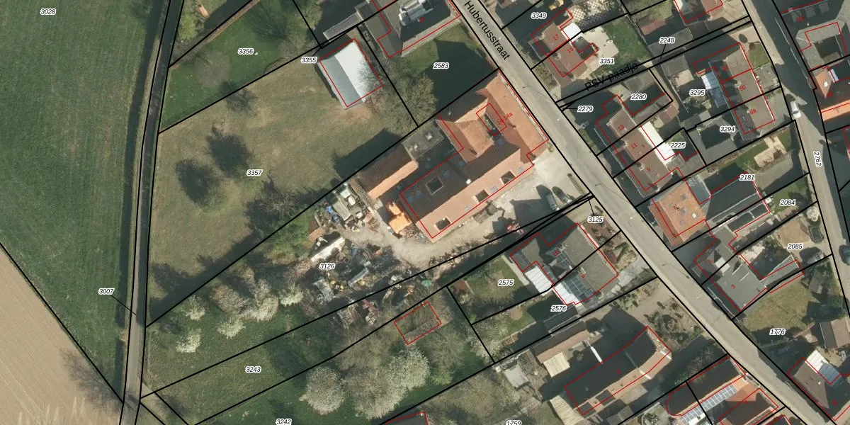 Het perceel waarop Hubertusstraat 14-g staat heeft een oppervlakte van 2877 m². Dit is een zeer groot perceel. De perceeloppervlakte wordt geregistreerd door het Kadaster. Gedetailleerde informatie over de maten van dit perceel kunt u vinden in het rapport Kadastrale kaart met maatvoering van Hubertusstraat 14-g.