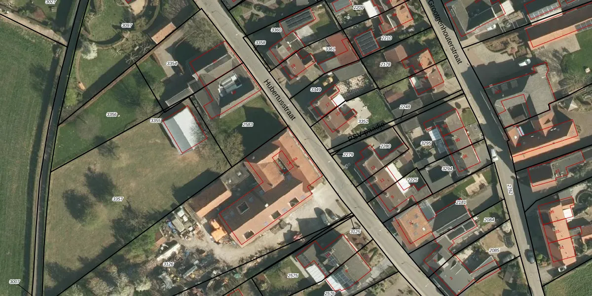 Het perceel waarop Hubertusstraat 14-k staat heeft een oppervlakte van 2877 m². Dit is een zeer groot perceel. De perceeloppervlakte wordt geregistreerd door het Kadaster. Gedetailleerde informatie over de maten van dit perceel kunt u vinden in het rapport Kadastrale kaart met maatvoering van Hubertusstraat 14-k.