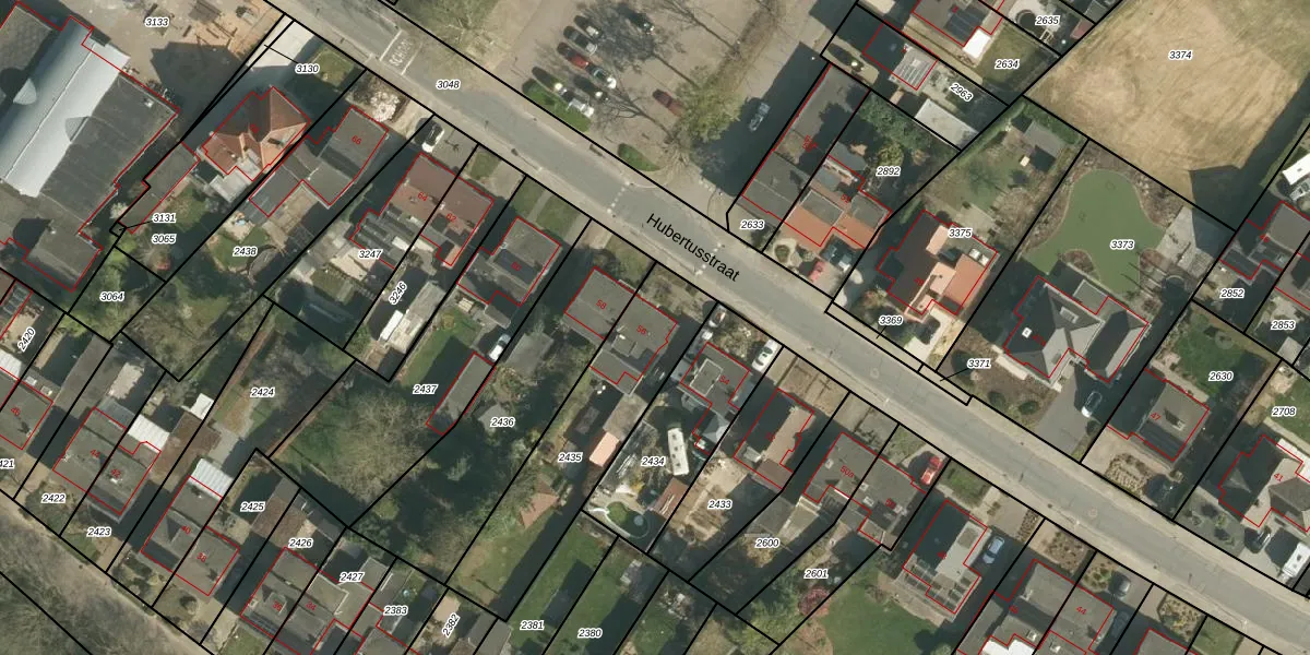 Het perceel waarop Hubertusstraat 56 staat heeft een oppervlakte van 647 m². Dit is een groot perceel. De perceeloppervlakte wordt geregistreerd door het Kadaster. Gedetailleerde informatie over de maten van dit perceel kunt u vinden in het rapport Kadastrale kaart met maatvoering van Hubertusstraat 56.