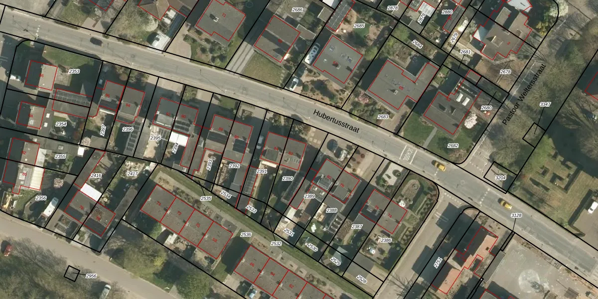 Hubertusstraat 82 is gelegen op kadastraal perceel BEE02C2390. Deze kadastrale aanduiding is uniek en wordt gebruikt door het Kadaster om eigendomsrechten en andere zakelijke rechten vast te leggen. Het perceel maakt onderdeel uit van de kadastrale gemeente Beek.
