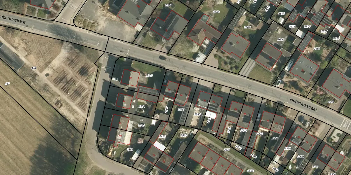 Hubertusstraat 96 is gelegen op kadastraal perceel BEE02C2397. Deze kadastrale aanduiding is uniek en wordt gebruikt door het Kadaster om eigendomsrechten en andere zakelijke rechten vast te leggen. Het perceel maakt onderdeel uit van de kadastrale gemeente Beek.