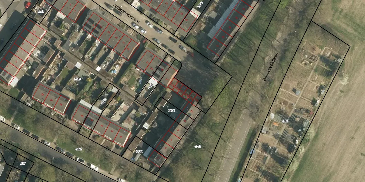 Het perceel waarop Johannesstraat 27-c staat heeft een oppervlakte van 5781 m². Dit is een zeer groot perceel. De perceeloppervlakte wordt geregistreerd door het Kadaster. Gedetailleerde informatie over de maten van dit perceel kunt u vinden in het rapport Kadastrale kaart met maatvoering van Johannesstraat 27-c.