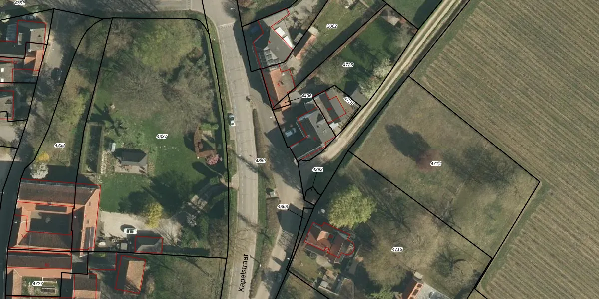 Kapelstraat 8 is gelegen op kadastraal perceel BEE02F4726. Deze kadastrale aanduiding is uniek en wordt gebruikt door het Kadaster om eigendomsrechten en andere zakelijke rechten vast te leggen. Het perceel maakt onderdeel uit van de kadastrale gemeente Beek.