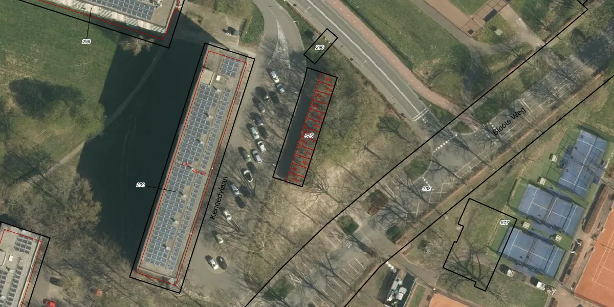 Het perceel waarop Kennedylaan 48-r staat heeft een oppervlakte van 375 m². Dit is een groot perceel. De perceeloppervlakte wordt geregistreerd door het Kadaster. Gedetailleerde informatie over de maten van dit perceel kunt u vinden in het rapport Kadastrale kaart met maatvoering van Kennedylaan 48-r.