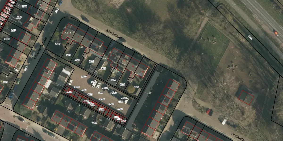 Gebruik de zoekbalk of klik op een perceel voor informatie over de adressen binnen dit perceel.