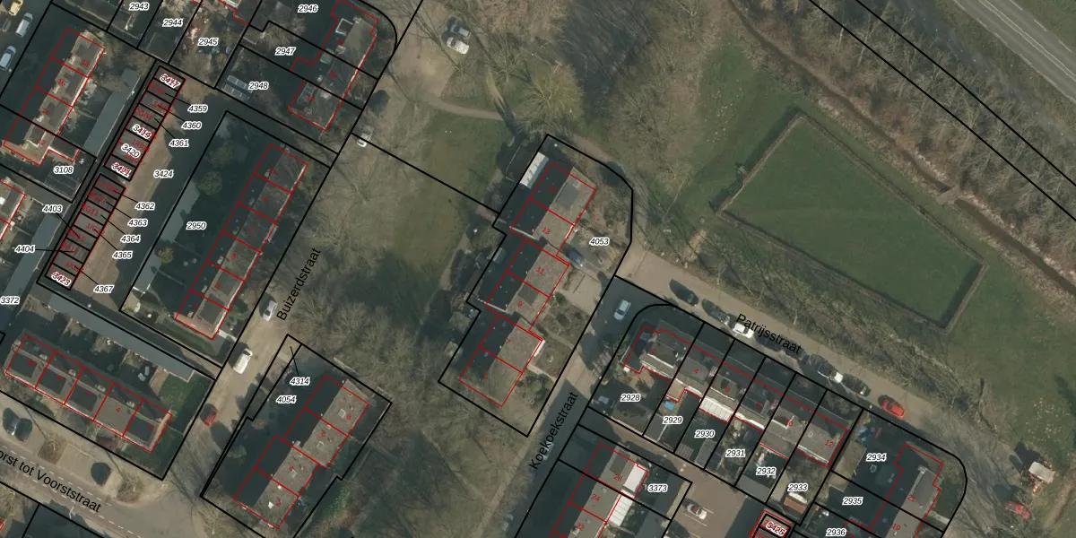 Het perceel waarop Koekoekstraat 11 staat heeft een oppervlakte van 1045 m². Dit is een zeer groot perceel. De perceeloppervlakte wordt geregistreerd door het Kadaster. Gedetailleerde informatie over de maten van dit perceel kunt u vinden in het rapport Kadastrale kaart met maatvoering van Koekoekstraat 11.