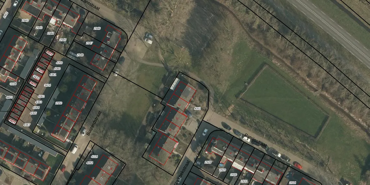 Het perceel waarop Koekoekstraat 15 staat heeft een oppervlakte van 1045 m². Dit is een zeer groot perceel. De perceeloppervlakte wordt geregistreerd door het Kadaster. Gedetailleerde informatie over de maten van dit perceel kunt u vinden in het rapport Kadastrale kaart met maatvoering van Koekoekstraat 15.