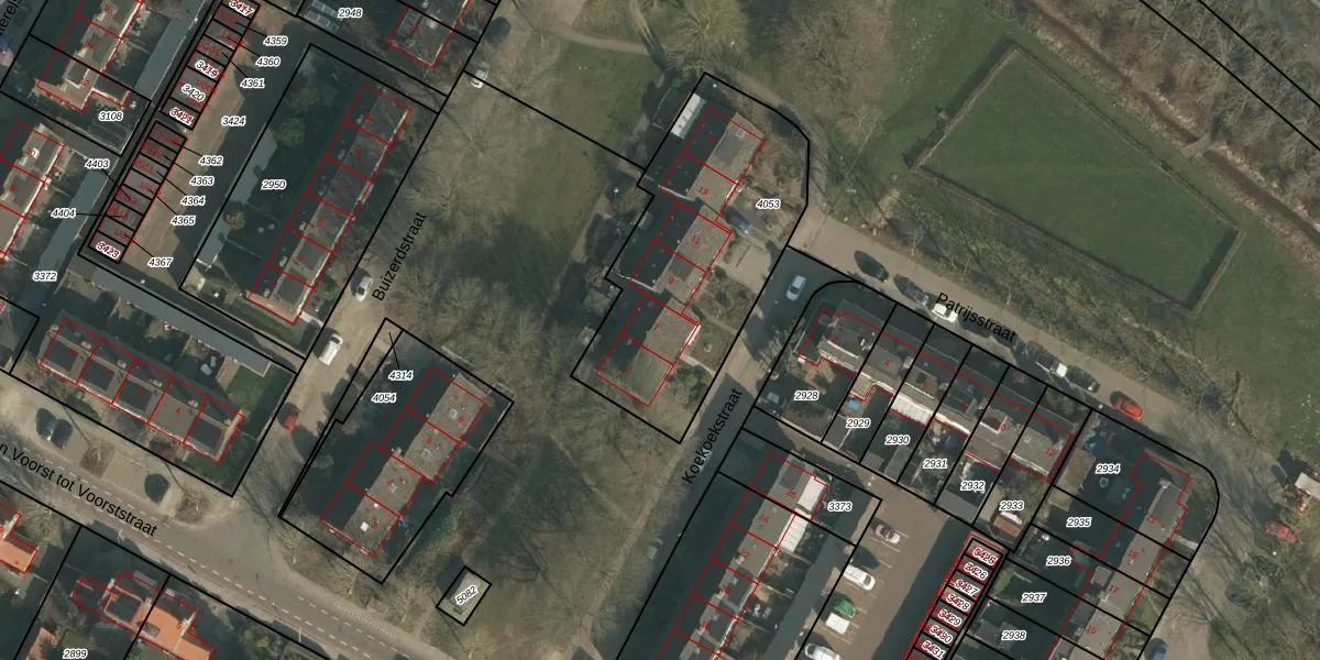 Het perceel waarop Koekoekstraat 7 staat heeft een oppervlakte van 1045 m². Dit is een zeer groot perceel. De perceeloppervlakte wordt geregistreerd door het Kadaster. Gedetailleerde informatie over de maten van dit perceel kunt u vinden in het rapport Kadastrale kaart met maatvoering van Koekoekstraat 7.