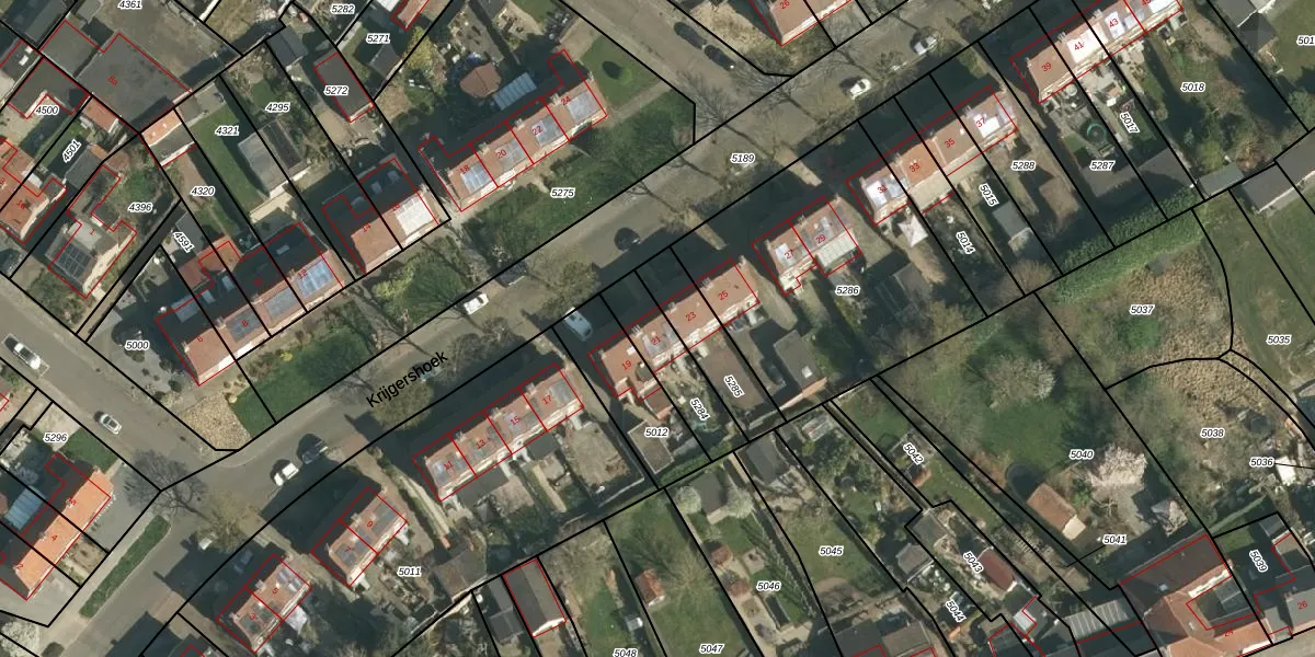 Krijgershoek 21 is gelegen op kadastraal perceel BEE02A5284. Deze kadastrale aanduiding is uniek en wordt gebruikt door het Kadaster om eigendomsrechten en andere zakelijke rechten vast te leggen. Het perceel maakt onderdeel uit van de kadastrale gemeente Beek.