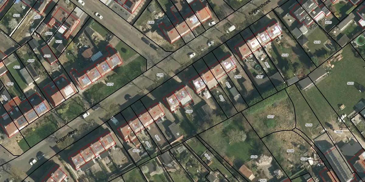 Krijgershoek 29 is gelegen op kadastraal perceel BEE02A5286. Deze kadastrale aanduiding is uniek en wordt gebruikt door het Kadaster om eigendomsrechten en andere zakelijke rechten vast te leggen. Het perceel maakt onderdeel uit van de kadastrale gemeente Beek.