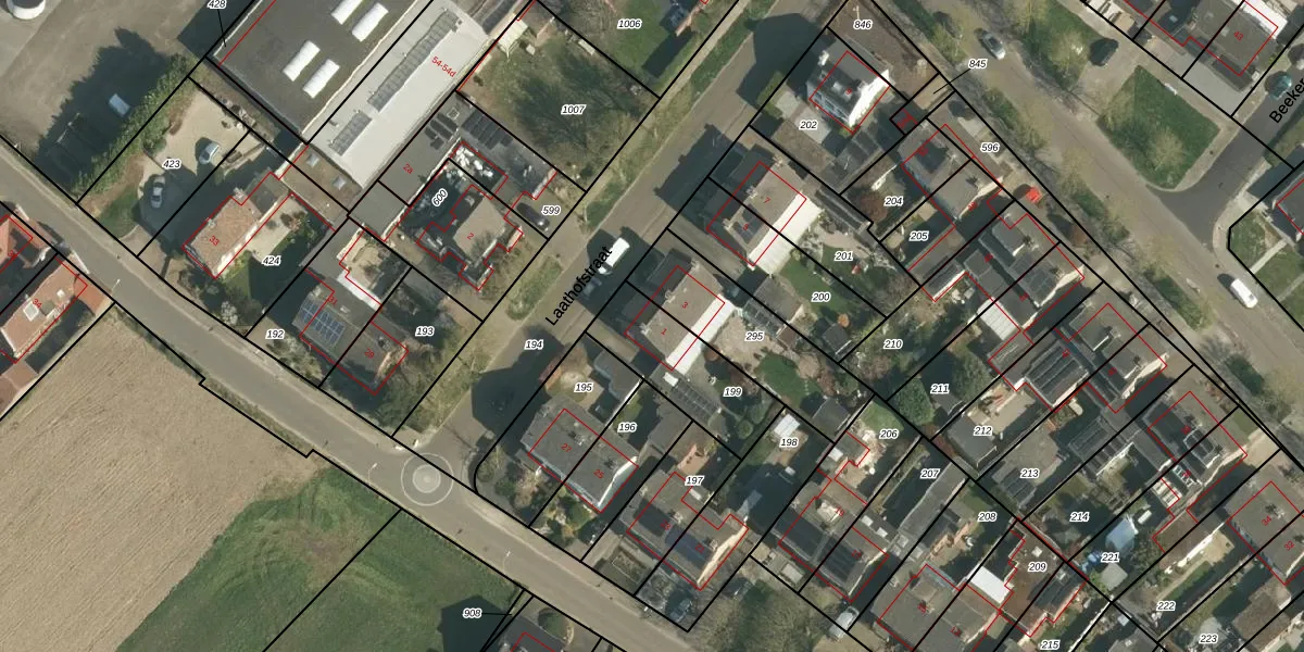 Laathofstraat 1 is gelegen op kadastraal perceel BEE02I199. Deze kadastrale aanduiding is uniek en wordt gebruikt door het Kadaster om eigendomsrechten en andere zakelijke rechten vast te leggen. Het perceel maakt onderdeel uit van de kadastrale gemeente Beek.