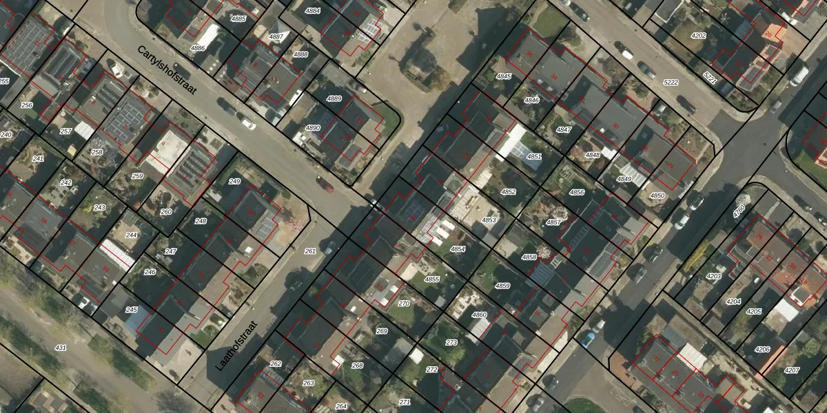 Het perceel waarop Laathofstraat 19 staat heeft een oppervlakte van 275 m². Dit is een middelgroot perceel. De perceeloppervlakte wordt geregistreerd door het Kadaster. Gedetailleerde informatie over de maten van dit perceel kunt u vinden in het rapport Kadastrale kaart met maatvoering van Laathofstraat 19.
